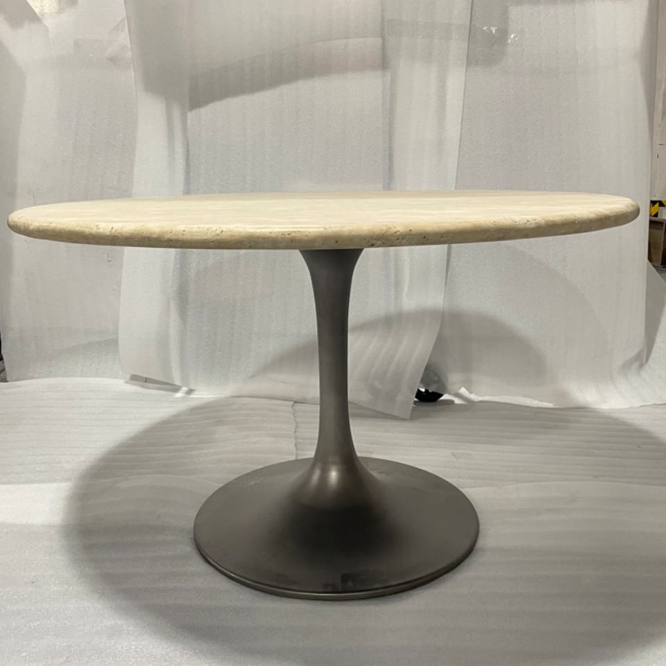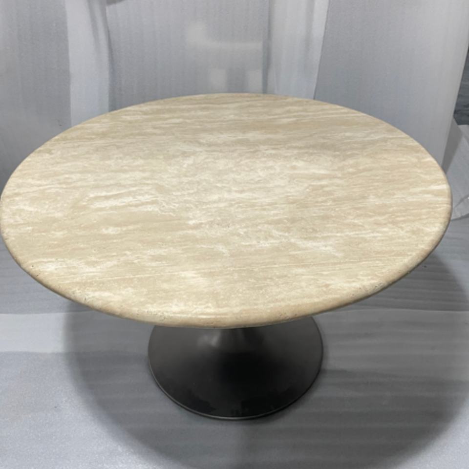 โต๊ะอาหารท็อปหินอ่อนทราเวอร์ทีนธรรมชาติทรงกลม ขาเหล็ก