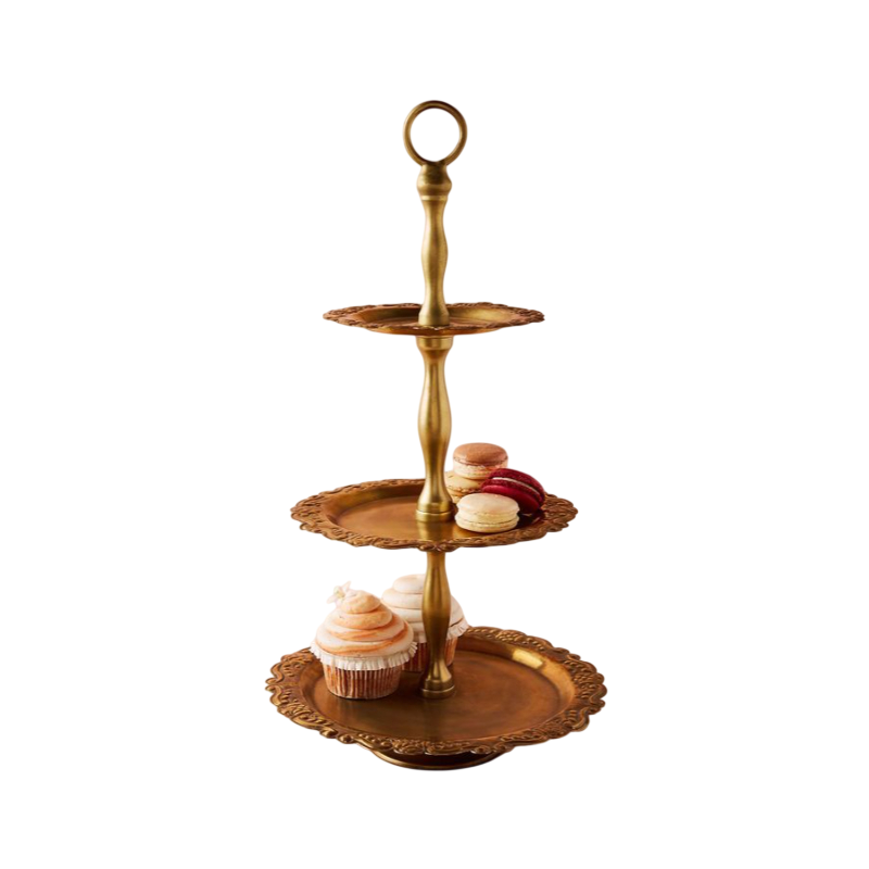 ขาตั้งเค้กทรงกลมยอดนิยม ทำจากทองเหลือง 3 ชั้น ชุบทอง สำหรับเสิร์ฟอาหารและขนมในงานวันเกิด