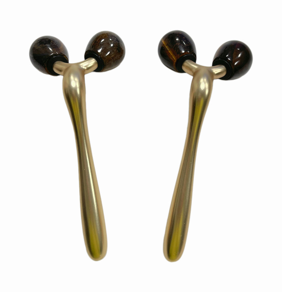 เครื่องนวดหน้า 3 มิติ ยอดนิยม ทำจากหินธรรมชาติ ช่วยลดเลือนริ้วรอย หินไทเกอร์อาย ลูกกลิ้งหยก 3 มิติ