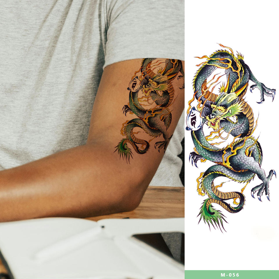 สติกเกอร์รอยสักลายมังกรสำหรับผู้ชายสติกเกอร์รอยสักชั่วคราวที่แขนกันน้ำเซ็กซี่ยอดนิยมสำหรับผู้ใหญ่