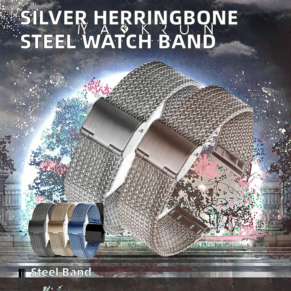 สายนาฬิกาสลักลายยอดนิยม ทำจากสแตนเลส 304 ปลอดภัยต่อสิ่งแวดล้อม ลายก้างปลา สำหรับโปรโมชั่น