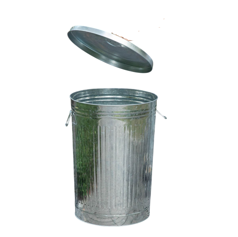 ถังขยะเหล็กชุบสังกะสีทรงกลมแบบมีหูจับและฝาปิด สำหรับใช้ภายในและภายนอกอาคาร