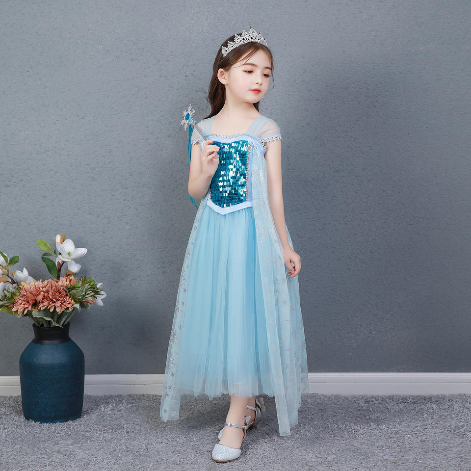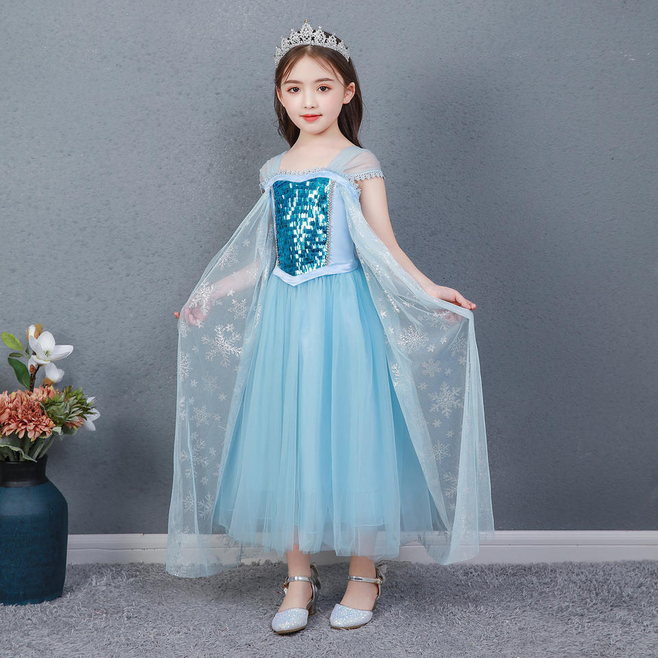 ชุดเจ้าหญิงน้ำแข็งสไตล์ยอดนิยม เอลซ่า ชุดแสดงเด็ก ชุดคลุมเลื่อม ชุดเด็กสำหรับงานคาร์นิวัลและงานปาร์ตี้
