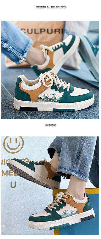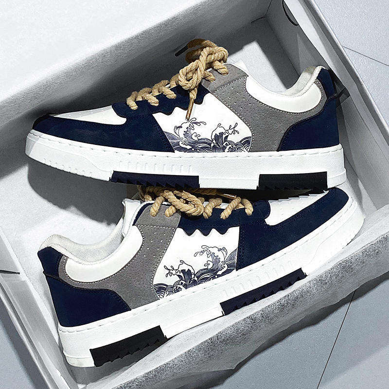 รองเท้าผ้าใบผู้ชายสไตล์ยอดนิยม กันน้ำ แฟชั่นใหม่ PU สปอร์ต 2026 แนวเรโทร รองเท้าลำลองทรงเตี้ย พื้นเรียบ เดินสบาย
