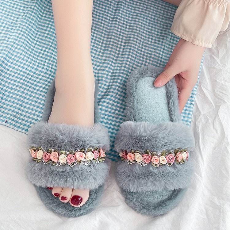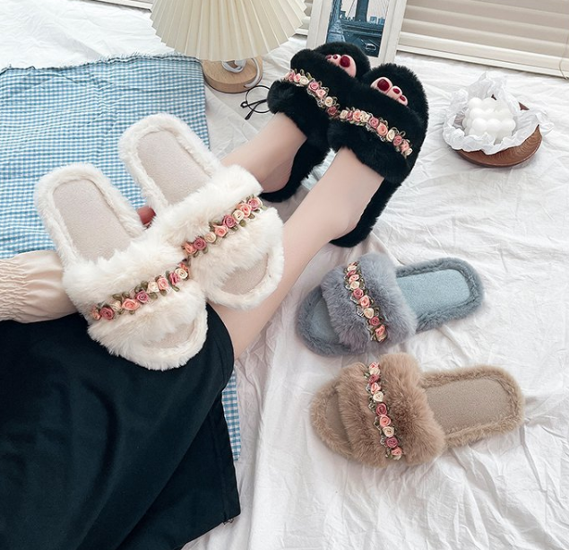 รองเท้าแตะแฟชั่นพื้น TPR ยอดนิยม บุขนนุ่ม สำหรับผู้หญิง ขายส่งราคาถูก