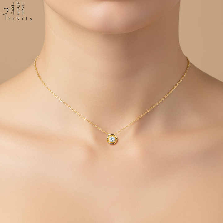 สร้อยคอผู้หญิงดีไซน์ดอกไม้สวยหรูแบบซ้อนได้ ขายส่งยอดนิยม สร้อยคอทองคำแท้ 18K ประดับเพชรแท้ธรรมชาติ