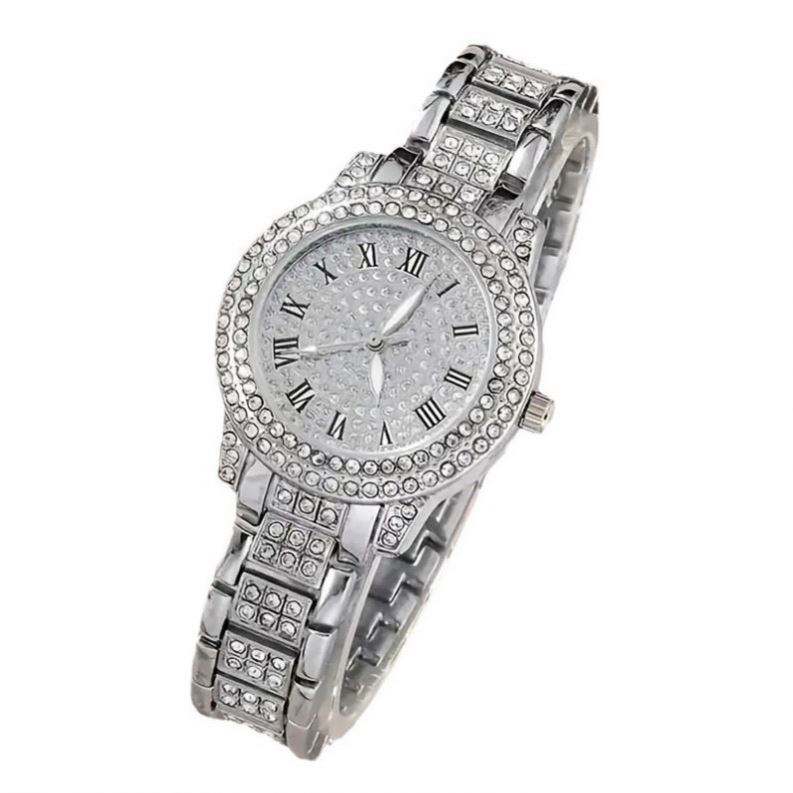 นาฬิกาข้อมือผู้หญิงยอดนิยม ดีไซน์หรูหรา สไตล์ลำลอง หน้าปัดโรมัน ควอตซ์ สายสแตนเลสสตีลประดับเพชรเต็มวง