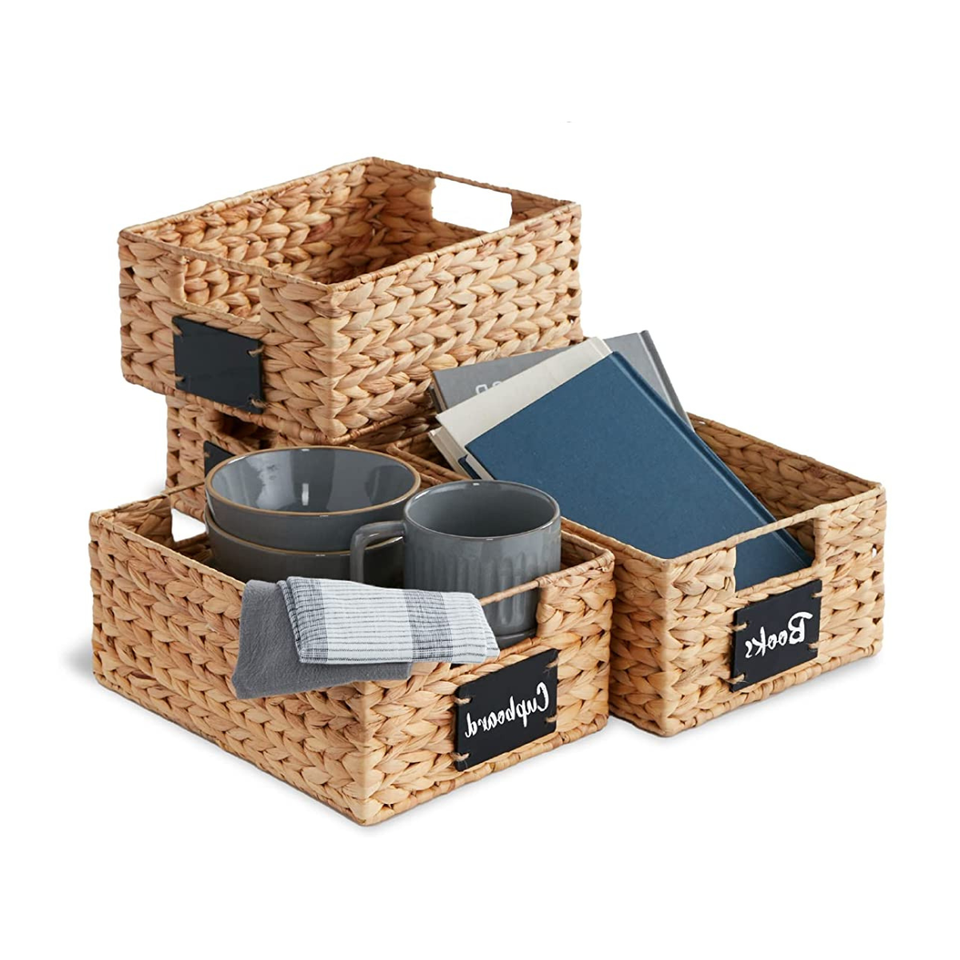 ตะกร้าสานพร้อมป้ายกระดานดำสำหรับเก็บอาหารและเครื่องดื่มตะกร้าผักตบชวา