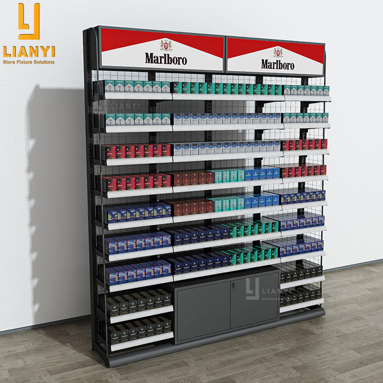 ชั้นโชว์โลหะพร้อมกล่องไฟ LED ตู้โชว์สำหรับร้านค้าปลีกยอดนิยมชื่อ