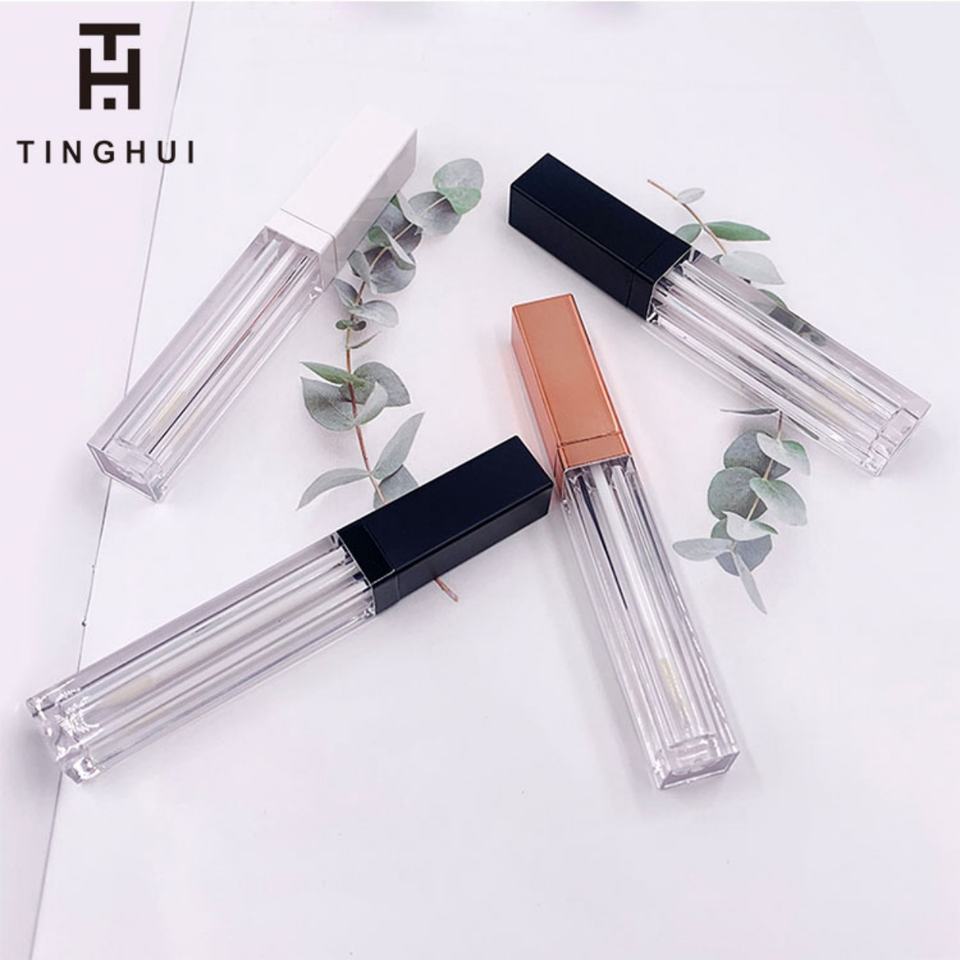 หลอดลิปกลอสใสทรงเหลี่ยมยอดนิยม หลอดลิปออยล์เปล่าแบบกำหนดฉลากเองได้ บรรจุภัณฑ์หลอดเครื่องสำอาง