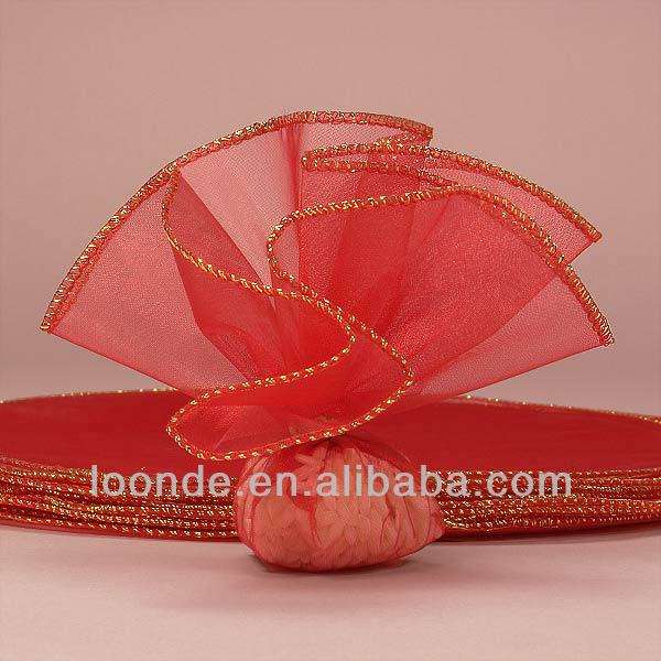 ผ้าออร์แกนซ่าทรงกลมแบบมีเชือกรูด นิยมใช้เป็นของห่อของขวัญ