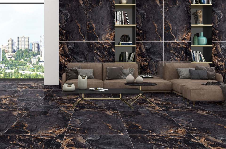 Ergon black high glossy floor tiles porcelain 9mm AAA grade quality high demand tiles factory rate wholesale tiles for floor
