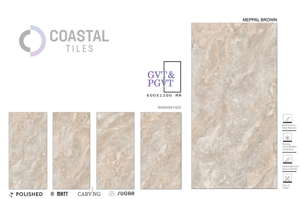 กระเบื้องพอร์ซเลนสีน้ำตาลขัดเงาขนาด 600x1200 มม. สำหรับปูพื้นแบบโมเดิร์น เกรด AAA กันลื่น ทนกรด ทนความร้อน ป้องกันการกัดกร่อน