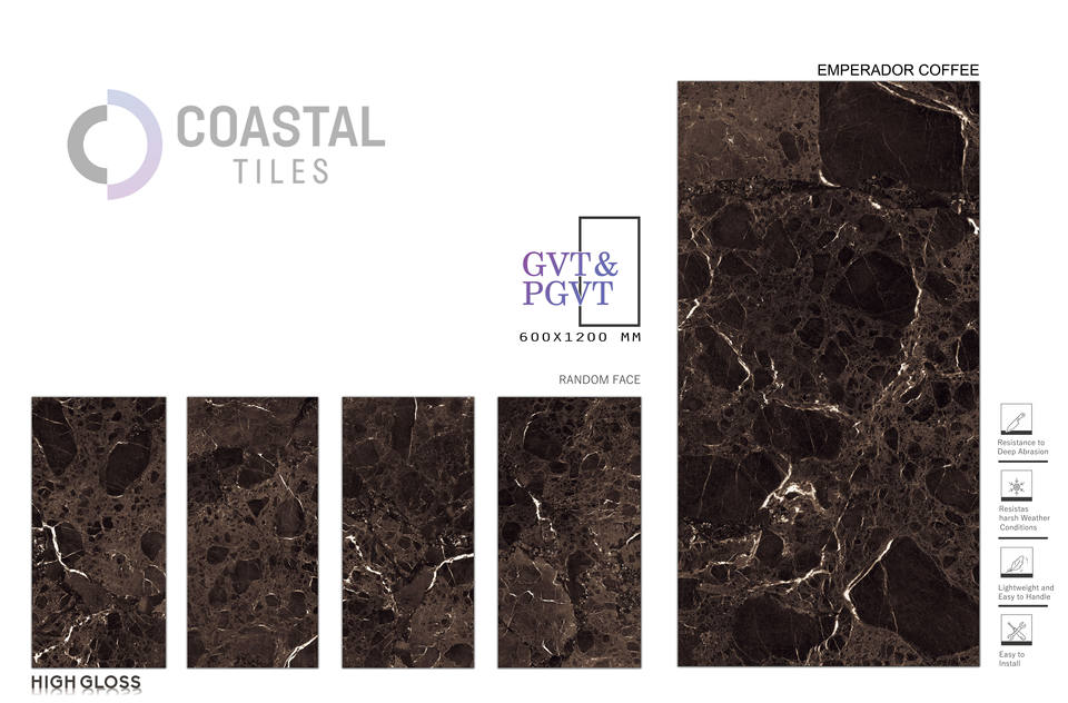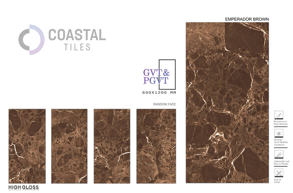 กระเบื้องพอร์ซเลนขนาด 600x1200 มม. ลายเอ็มเปราดอร์ สีคอฟฟี่ สำหรับปูพื้น ดีไซน์ทันสมัย เงาสูง กันลื่น แบบอิฐทนไฟ กำลังเป็นที่นิยม