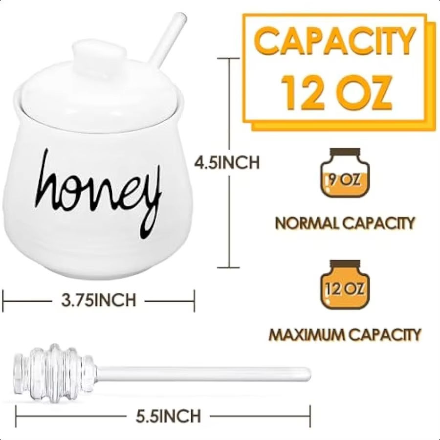 12ออนซ์ทำด้วยมือเซรามิกที่ทำด้วยมือพร้อมกระบวยพอร์ซเลนน้ำผึ้งฝาหม้อแก้ว