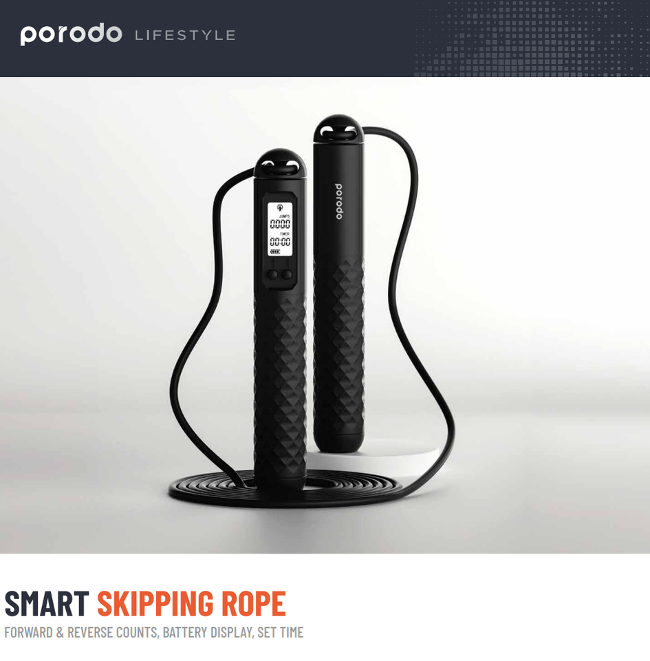 Porodo Lifestyle เชือกกระโดดอัจฉริยะจอแบตเตอรี่พร้อมการนับเดินหน้าและถอยหลังชุดติดตามการออกกำลังกาย