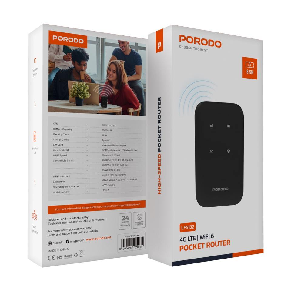 พอร์โด โพกเก็ต เราเตอร์ 4G LTE WiFi 6 โซลูชันการเชื่อมต่อความเร็วสูงแบบพกพาสำหรับบ้านและออฟฟิศ