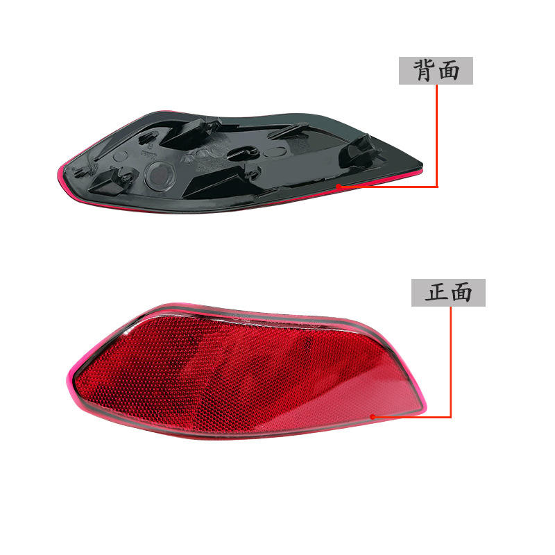 ไฟสะท้อนแสงด้านข้างกันชนหลัง Porsche Cayenne สีแดง รุ่น 95863110500 รูปทรงเมนิสคัส ใช้ได้กับไฟ LED