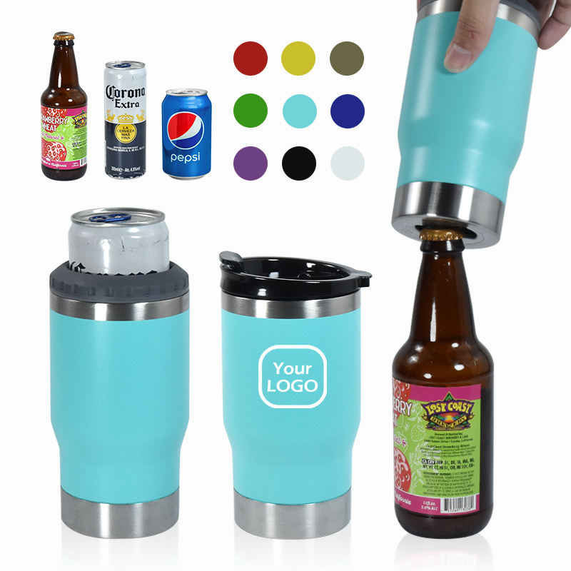กระติกน้ำสแตนเลสแบบสองชั้น 4-in-1 ขนาด 14 ออนซ์ พร้อมฝาปิด 2 แบบ พกพาสะดวก เป็นมิตรกับสิ่งแวดล้อม เหมาะสำหรับใส่กาแฟเดินทาง