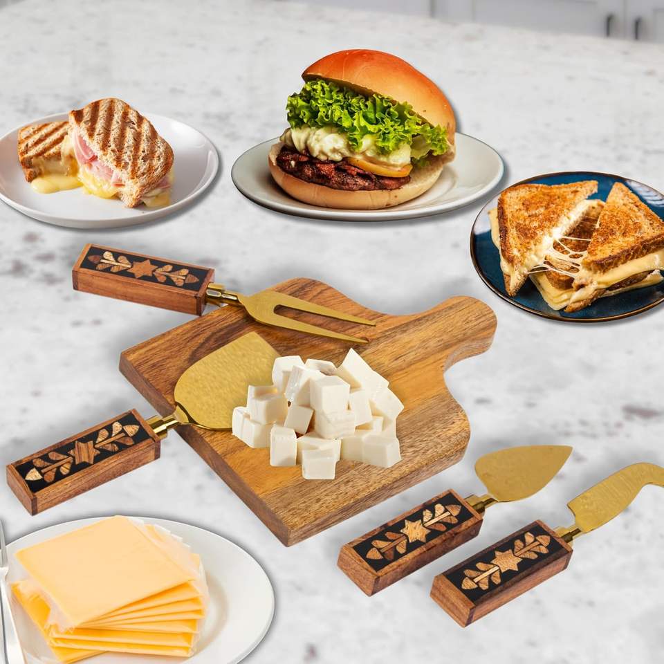 ชุดเครื่องมือหั่นชีส4ชิ้นทำจากไม้และสเตนเลสพกพาได้