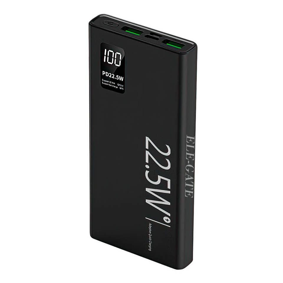 ELE-GATE พาวเวอร์แบงค์พกพา 10000mAh รับทำโลโก้ OEM วัสดุพลาสติก แบตเตอรี่ลิเธียมโพลิเมอร์ กำลังไฟ 22.5W พร้อมไฟ LED ชาร์จเร็ว ใช้ได้กับทุกอุปกรณ์