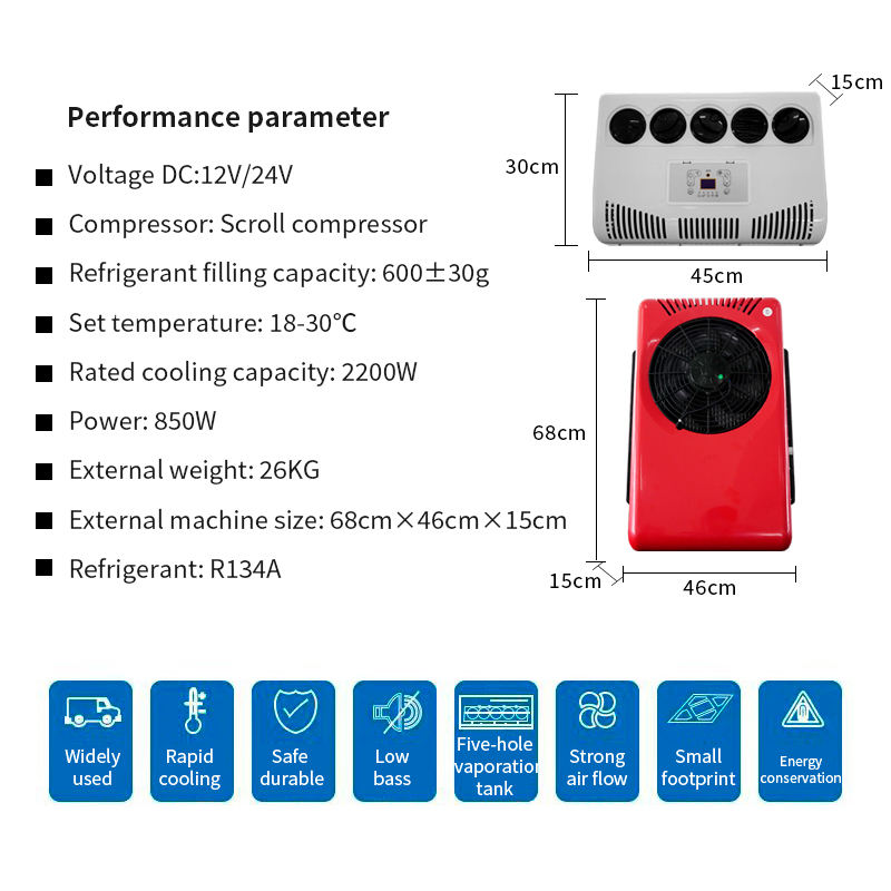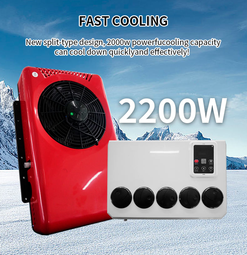 เครื่องปรับอากาศรถยนต์แบบพกพา 12V/24V DC 24/12 โวลต์ ระบบทำความเย็นสำหรับจอดรถ พร้อมตัวแยกสัญญาณ ใช้ได้กับรถยนต์ทั่วไป