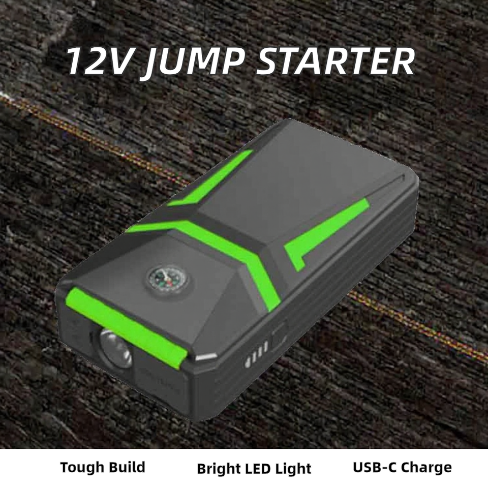 เครื่องจั๊มพ์สตาร์ทแบบพกพา 12V กำลังสูง แบตเตอรี่ลิเธียม พร้อมพอร์ตชาร์จ USB-C สำหรับรถยนต์ รถบรรทุก รถจักรยานยนต์ กระแสไฟสูงสุด 600A พร้อมไฟ LED