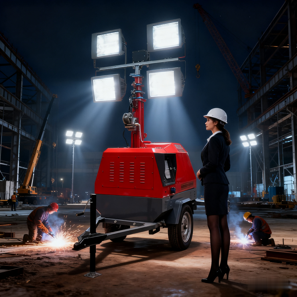หอคอยไฟดีเซล LED 8เมตร1400วัตต์แบบพกพารับประกันหนึ่งปี