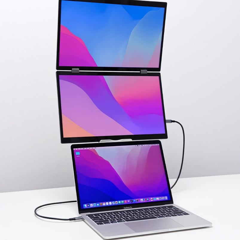 จอภาพ IPS LED ขนาด15.6นิ้วแบบพกพาหน้าจอคู่หรือสามจอแล็ปท็อปหน้าจอซ้อนกันได้ยืดหยุ่นพับได้