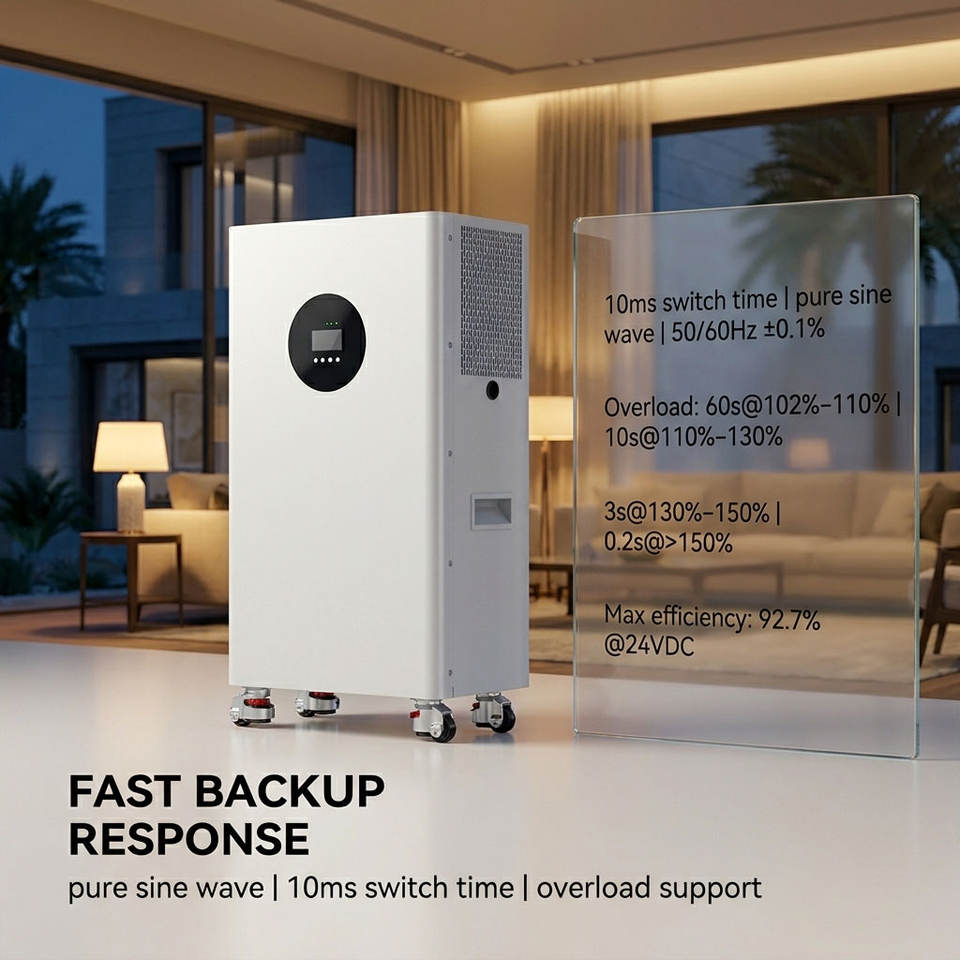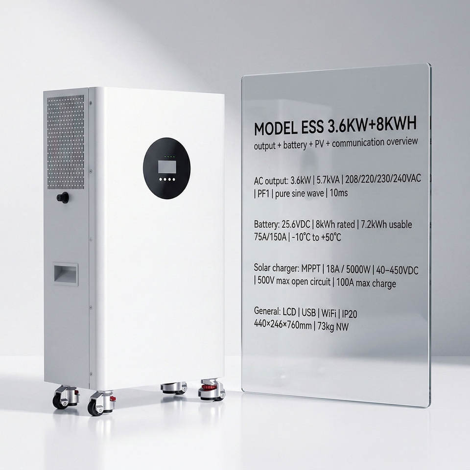 ระบบจัดเก็บพลังงานแสงอาทิตย์แบบเคลื่อนที่ 3.6 กิโลวัตต์ 8 กิโลวัตต์ชั่วโมง พร้อมล้อเลื่อน อินเวอร์เตอร์ไฮบริดในตัว แบตเตอรี่สำรองสำหรับบ้านแบบออลอินวัน