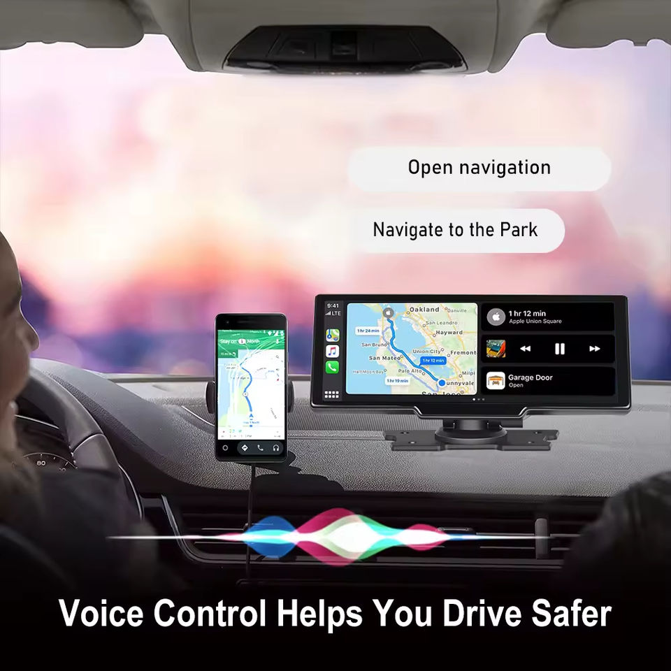 วิทยุติดรถยนต์แบบพกพา 3 in 1 Podofo จอภาพ 10.26 นิ้ว รองรับ Wireless CarPlay และ Android Auto พร้อมกล้องมองหลังและกล้องติดรถยนต์