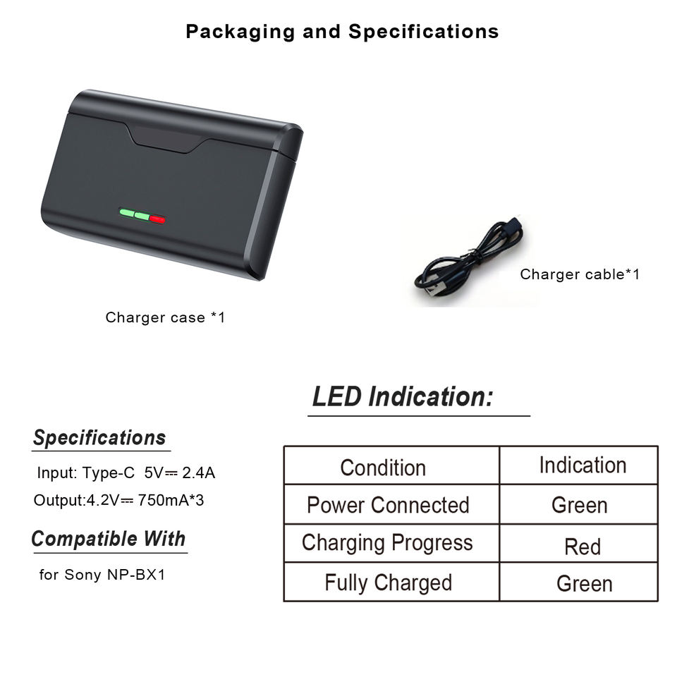 3สล็อตแบบพกพา5V รวดเร็ว USB Type C ชาร์จแบตเตอรี่กล่องชาร์จสำหรับ NP-BX1 * 1บรรจุในกล่องการพิมพ์โดยไม่มีข้อมูลบริษัทหรือกล่องสีขาว