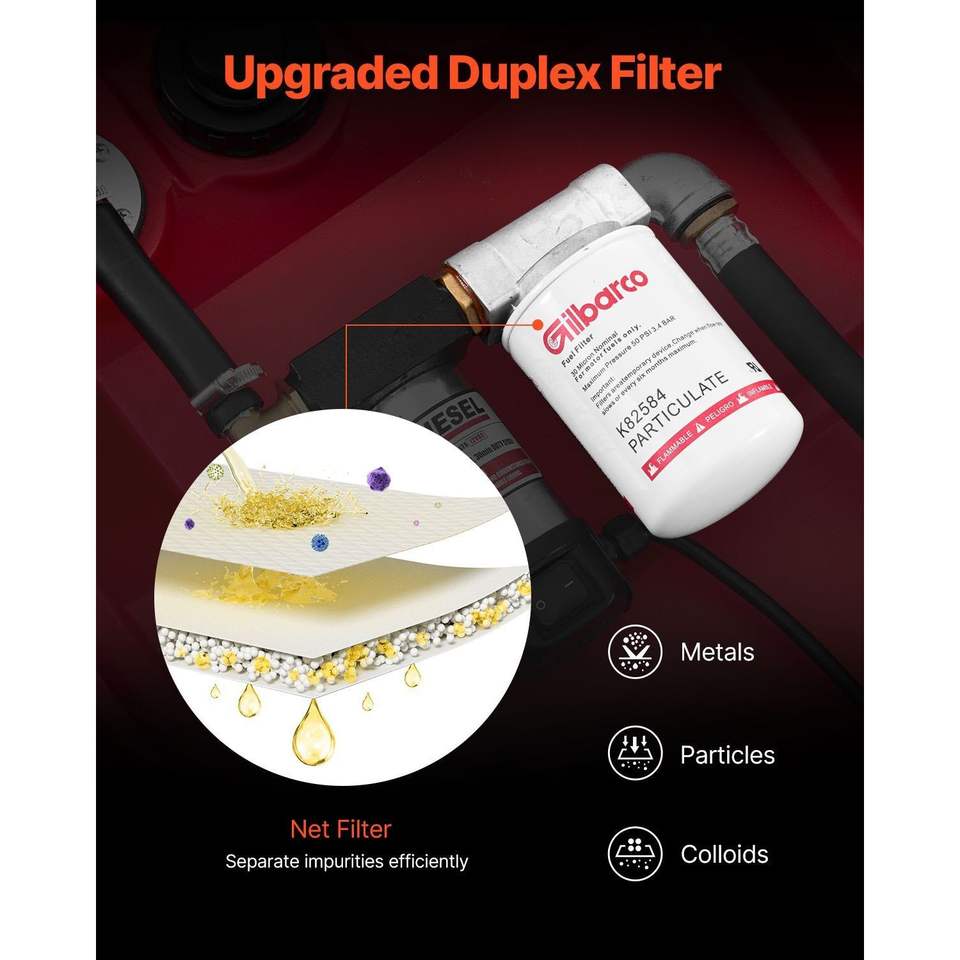 Portable 58-Gallon Diesel Fuel Tank with 12V Transfer Pump 10.6 GPM for Vehicle Equipment Red Color