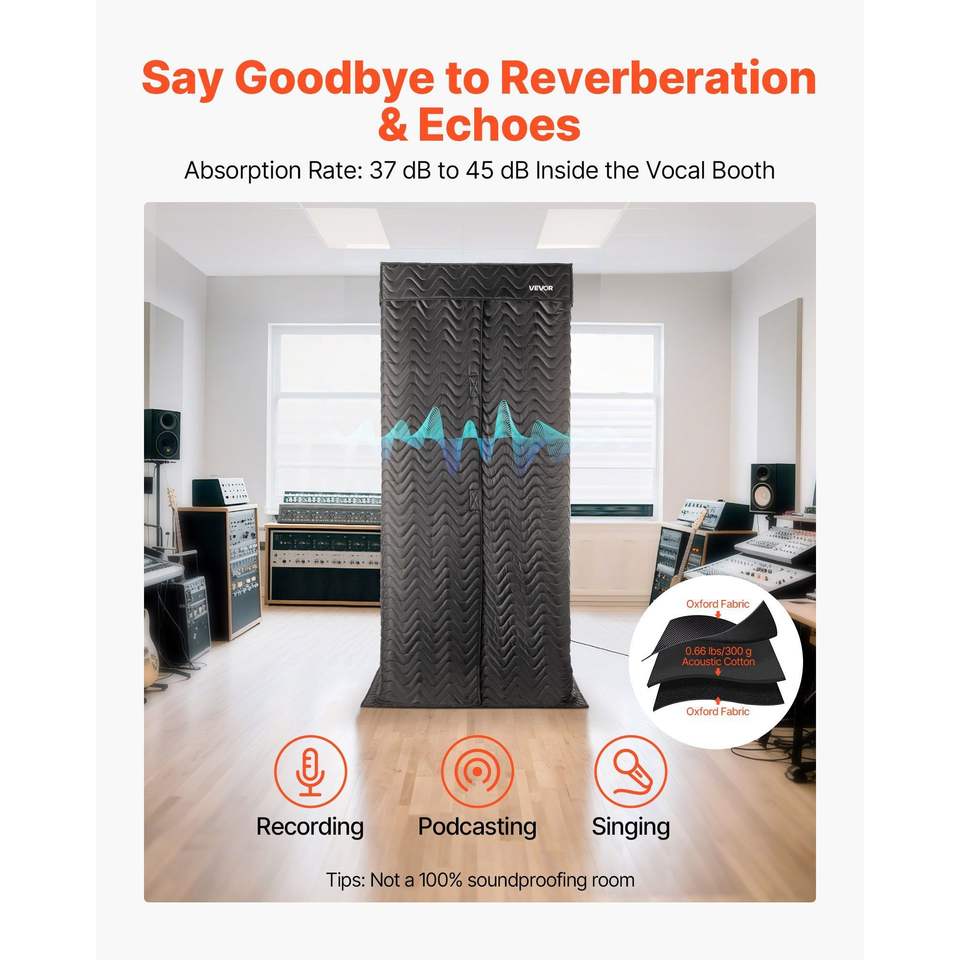 บูธบันทึกเสียงแบบพกพาขนาด 6.56 ฟุต พร้อมกระเป๋าเดินทางสำหรับอุปกรณ์เสียงพากย์และเครื่องเสียง