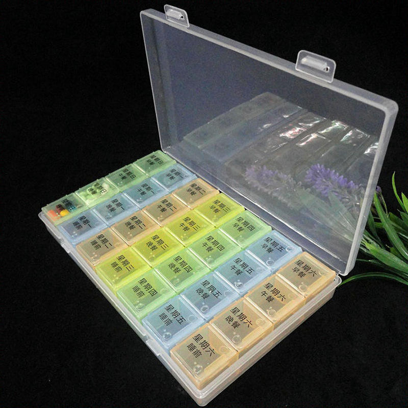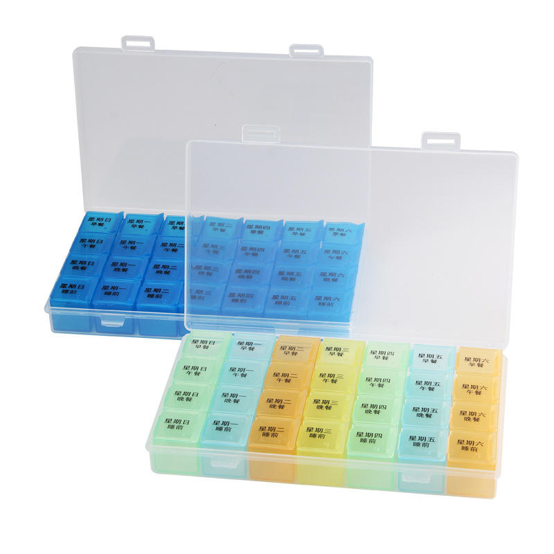 กล่องยาพลาสติกใสแบบพกพา 7 วัน 28 ช่อง พร้อมการจัดระเบียบที่ง่ายดายและการจัดเก็บแบบแบ่งหมวดหมู่เพื่อการจัดการที่มีประสิทธิภาพ