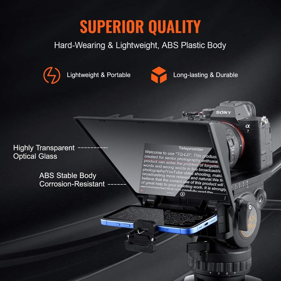 Portable 8'' Teleprompter Remote for Webcam and Smartphone Essential Live Streaming Equipment for On-the-Go Streaming