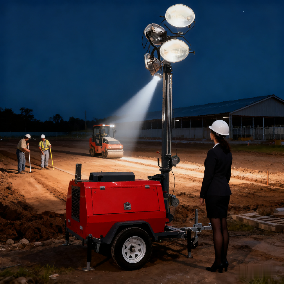 8kVA 8KW ดีเซลแบบพกพาใช้พลังงาน4X1000W ไฟหอส่งสัญญาณเคลื่อนที่