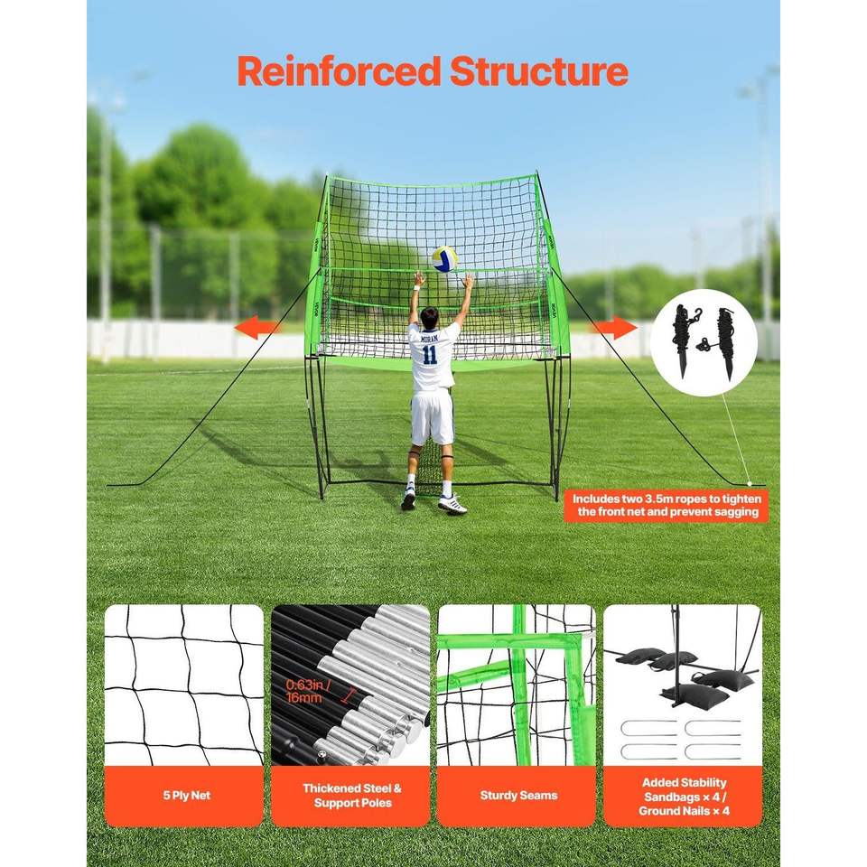 ระบบตาข่ายวอลเลย์บอลแบบพกพาขนาด 8x11 ฟุต ปรับความสูงได้ฟรี อุปกรณ์ฝึกซ้อมพร้อมระบบส่งลูกกลับ ตาข่ายแบบพกพาใช้งานง่าย