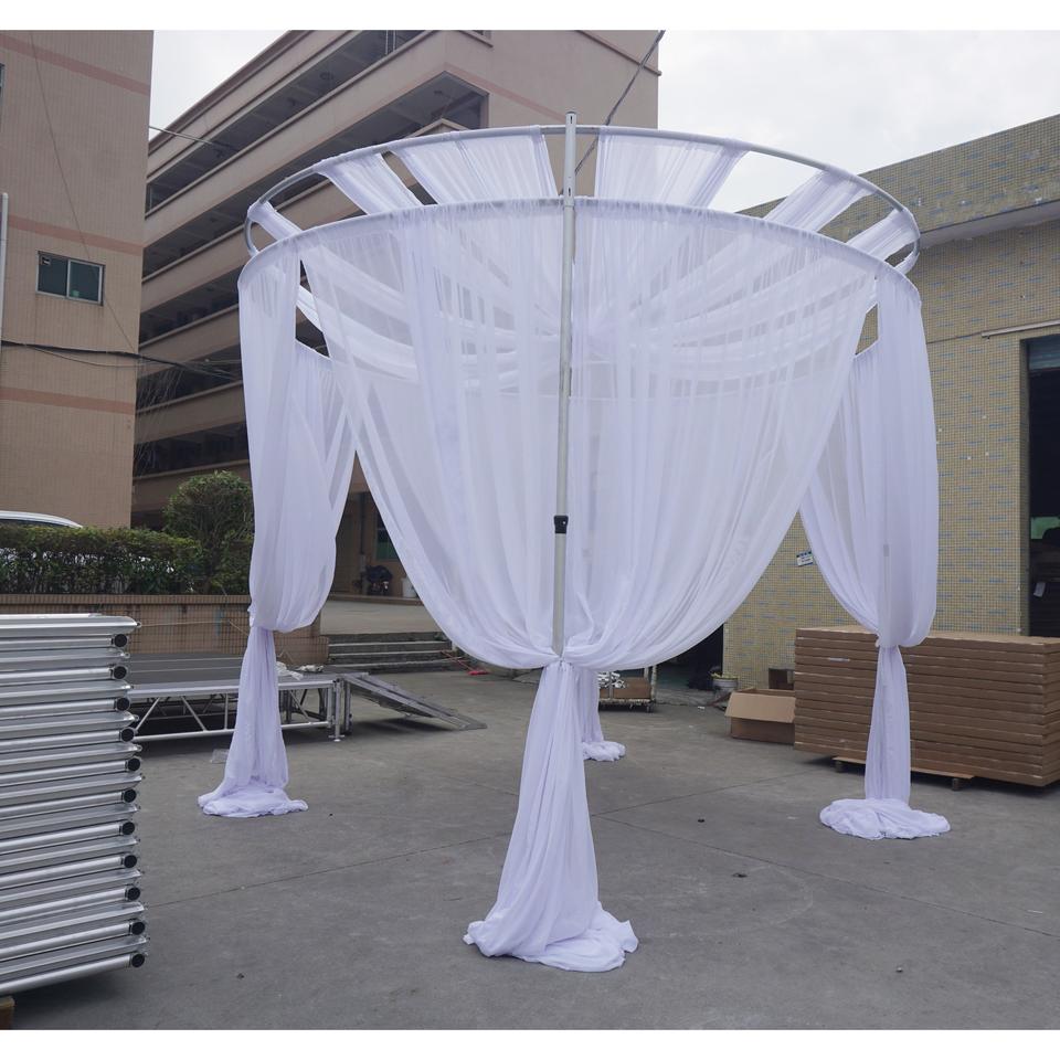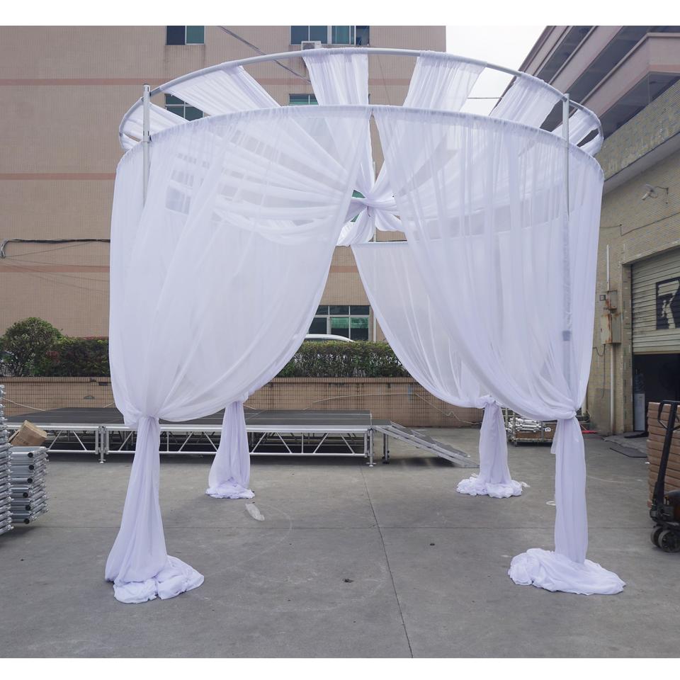 ขาตั้งฉากหลังงานแต่งงานแบบพกพาปรับได้ ทำจากอลูมิเนียมสีเงิน พร้อมท่อและผ้าม่านรุ่น RK RK-RT6X10 สำหรับงานแสดงสินค้าและบูธถ่ายภาพ