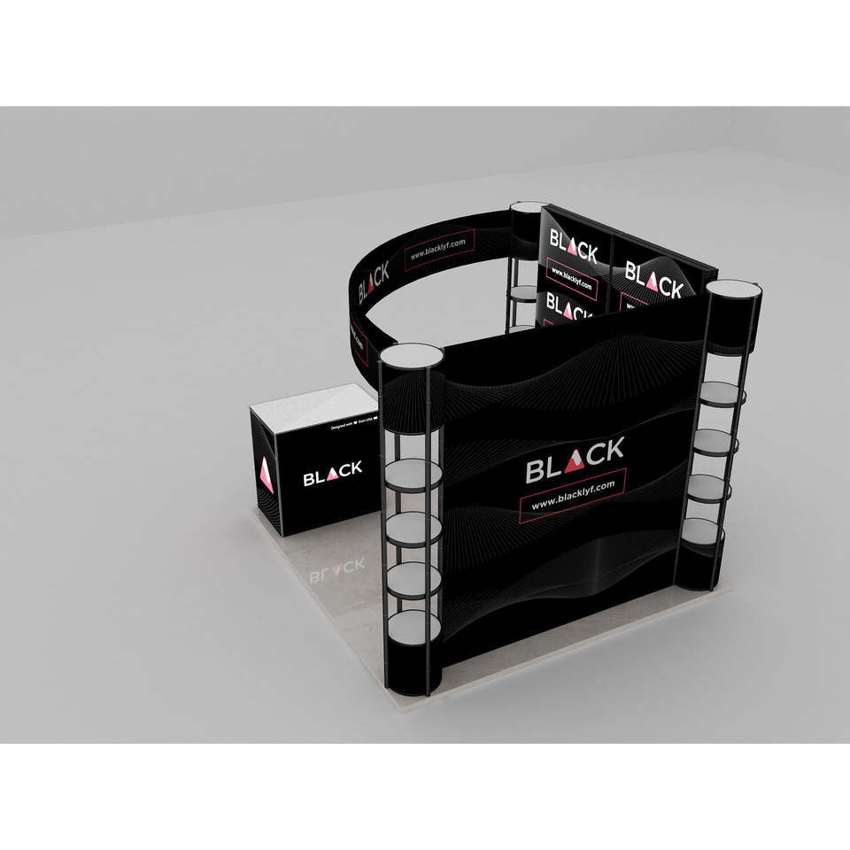 เคาน์เตอร์อะลูมิเนียมแบบพกพาแสดงสินค้าอะคริลวีทรีนส์เคาน์เตอร์การค้าอุปกรณ์การแสดงสินค้า lagerfactkasten hintergrundbeleuchtung Twister Tower