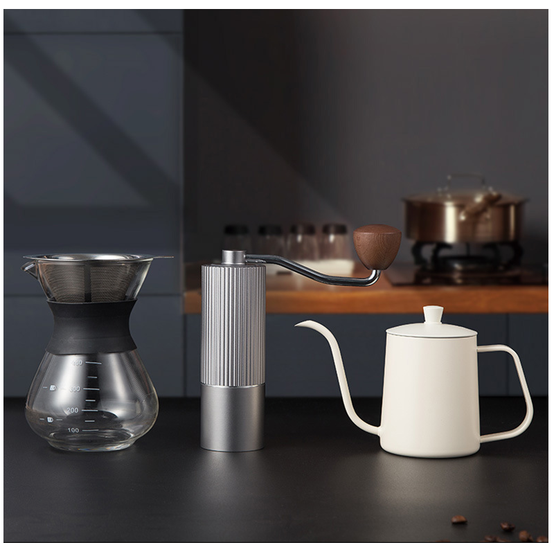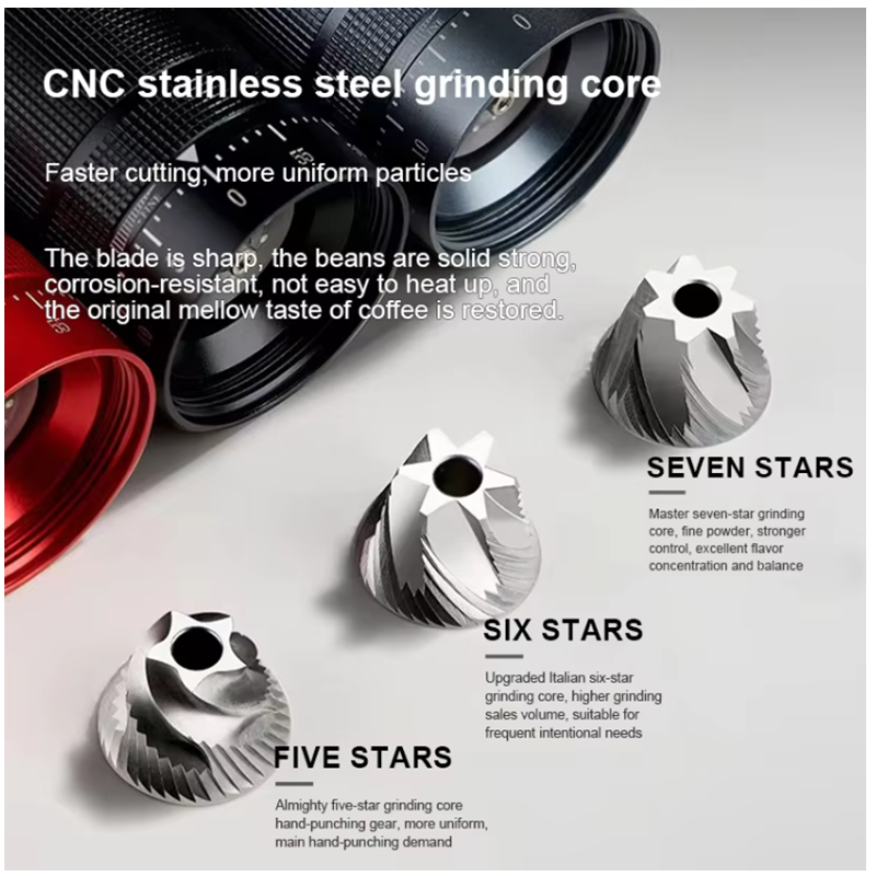 เครื่องบดเมล็ดกาแฟแบบมือหมุน ปรับระดับได้ ความจุ 20 กรัม ตัวเครื่องอะลูมิเนียมแบบพกพา แกนสแตนเลส