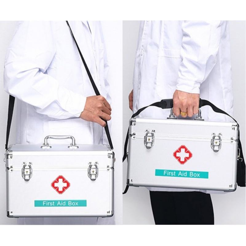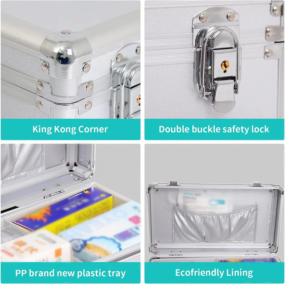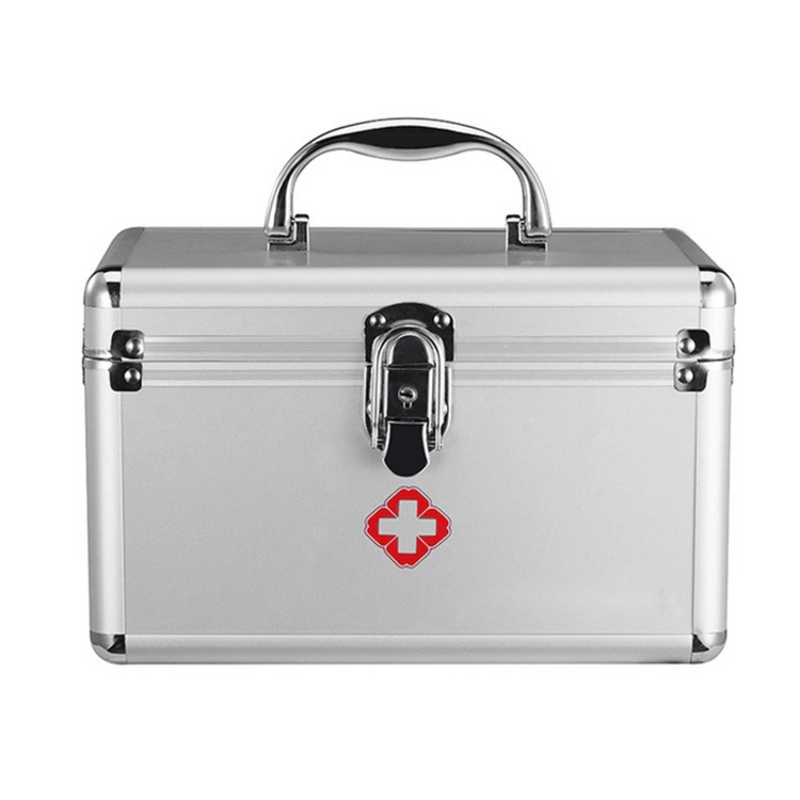 กล่องปฐมพยาบาลอลูมิเนียมแบบพกพาพร้อมล็อคและจัดการกล่องเก็บยากลางแจ้ง