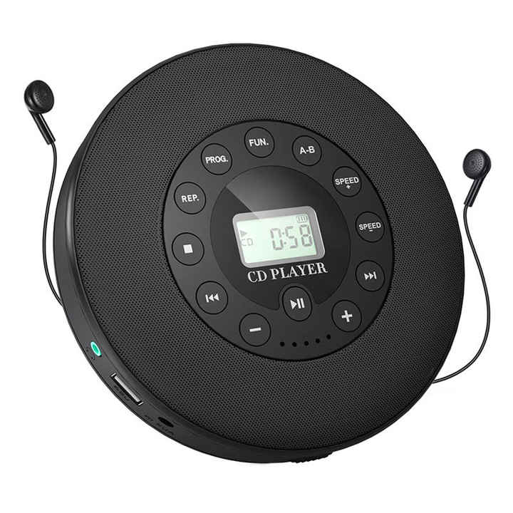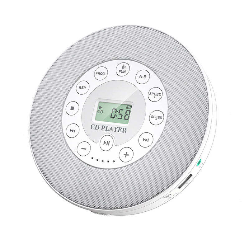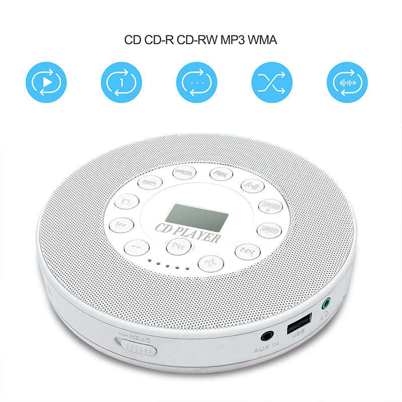 เครื่องเล่นซีดีแบบพกพา BT วิทยุ FM เครื่องเล่น MP3 ช่องต่อ AUX ตัวแปลงซีดีเป็น USB ลำโพงสเตอริโอ สำหรับใช้ในบ้านและกิจกรรมกลางแจ้ง
