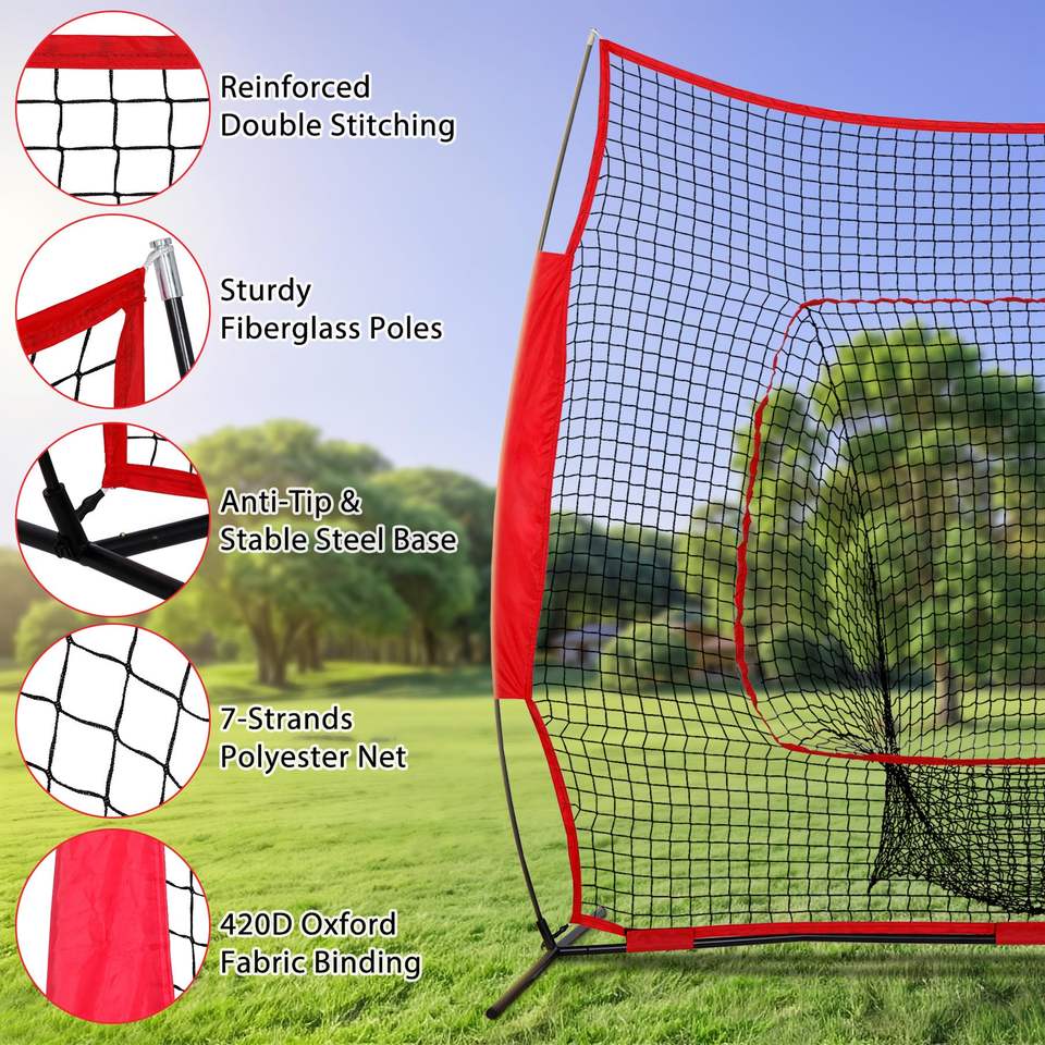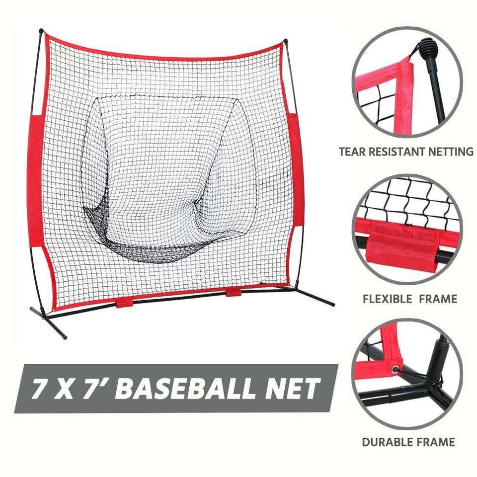 ตาข่ายฝึกซ้อมเบสบอลแบบพกพา ขนาด 7x7 ฟุต ตาข่ายฝึกซ้อมซอฟต์บอลพร้อมโซนตีสำหรับฝึกตี ฝึกขว้าง และฝึกซ้อม