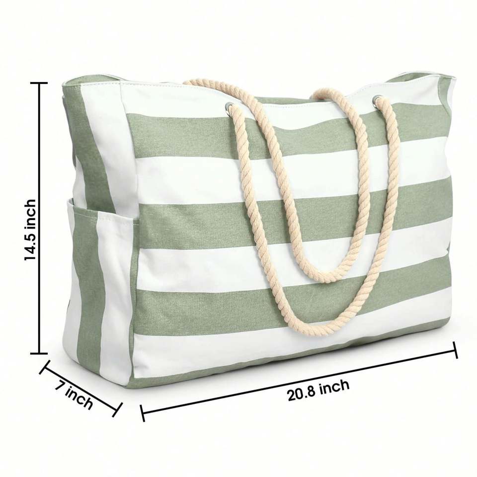 กระเป๋าชายหาดพกพาสำหรับผู้หญิง ขนาดใหญ่ กันน้ำ กระเป๋าผ้าแคนวาสสำหรับสระว่ายน้ำ มีซิป ขายส่ง กระเป๋าช้อปปิ้งผ้าฝ้ายขนาดใหญ่