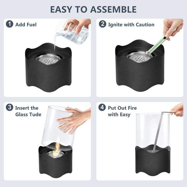 เตาเผาไบโอเอทานอลแบบพกพา ดีไซน์รูปทรงคลื่น สีดำ ใช้เป็นเตาไฟบนโต๊ะ ใช้เชื้อเพลิงสำหรับใช้ภายในและภายนอกอาคาร เตาผิงรูปทรงคลื่น