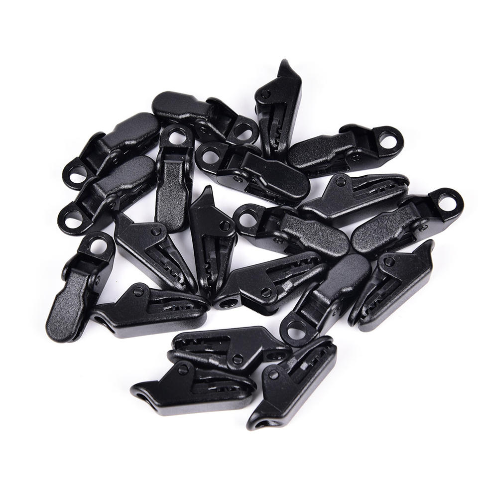 คลิปหนีบผ้าใบพลาสติกสีดำแบบพกพา ที่หนีบผ้าใบสำหรับเต็นท์ แคมป์ปิ้ง และกิจกรรมเอาตัวรอด ใช้สำหรับรัดและยึด