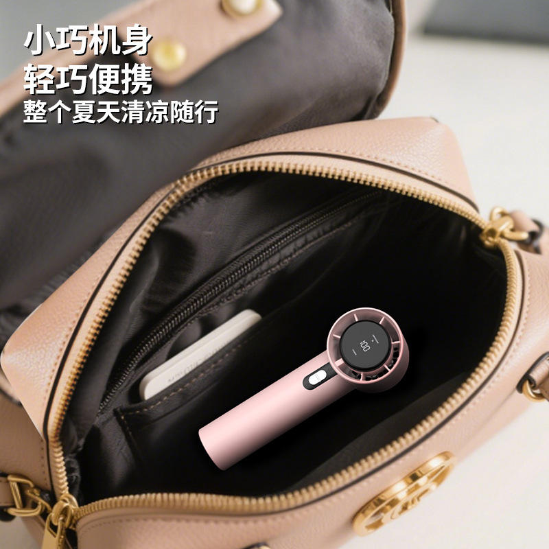 พัดลมพกพาไร้ใบพัดขนาดเล็กพร้อมจอแสดงผลดิจิตอล มอเตอร์ไร้แปรงถ่าน ชาร์จไฟได้ ใช้ได้ทั้งแบบมือถือและตั้งโต๊ะ สำหรับใช้ในบ้าน สำนักงาน และกลางแจ้ง