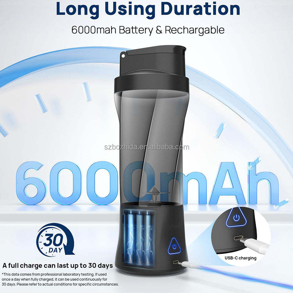 เครื่องปั่นแบบพกพา ชาร์จผ่าน USB แบตเตอรี่ 6000mAh ปลอดสาร BPA เครื่องปั่นขนาดเล็กสำหรับน้ำผลไม้ สมูทตี้ ใช้ได้ทั้งเดินทาง บ้าน ออฟฟิศ และฟิตเนส