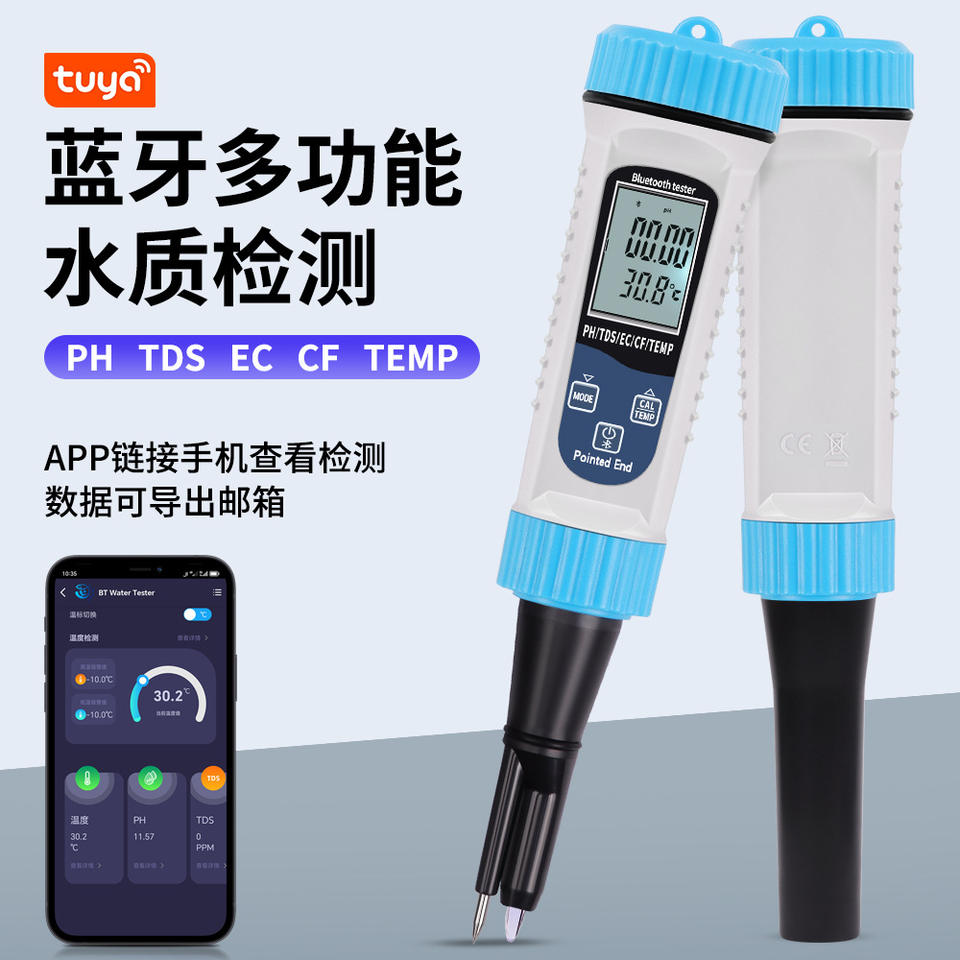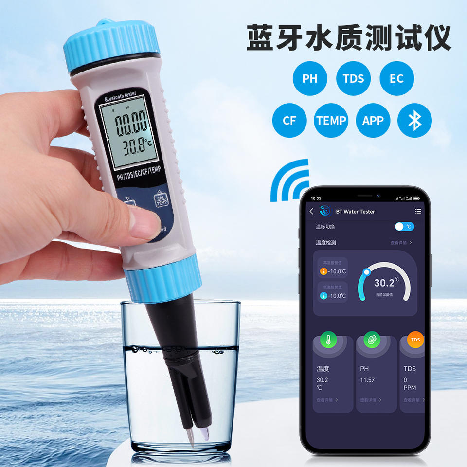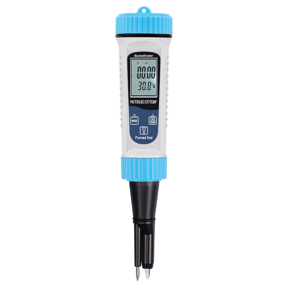 เครื่องทดสอบคุณภาพน้ำบลูทูธแบบพกพา pH TDS EC CF อุณหภูมิ 5 ใน 1 พร้อมหัววัดแบบแหลมสำหรับการทดสอบสระว่ายน้ำในตู้ปลา